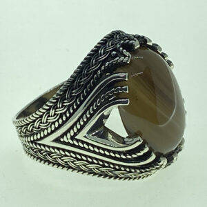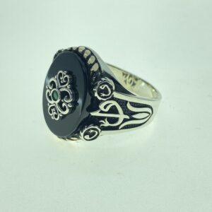 çiçek motifli oniks taşlı gümüş erkek yüzüğü